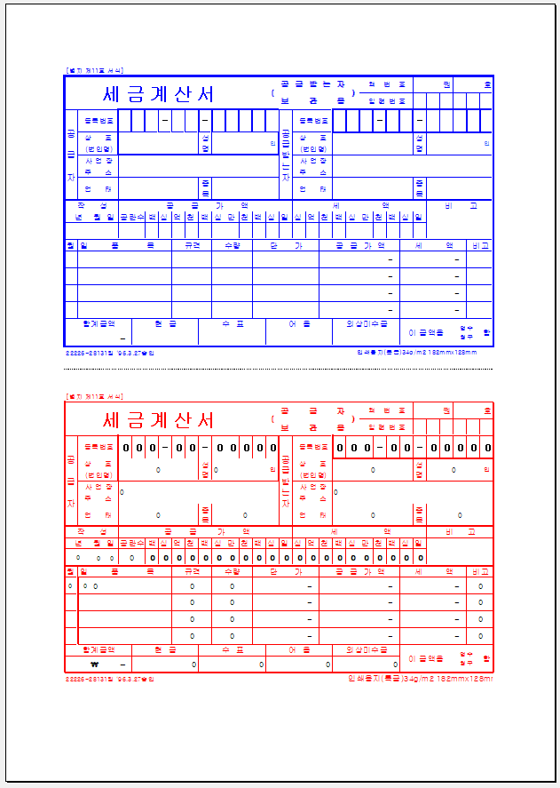 수기세금계산서 양식 무료 다운로드