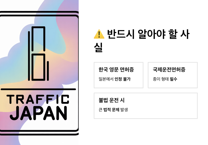 많은 분이 혼동하지만, 일본에서는 오직 국제운전면허증만 유효합니다.