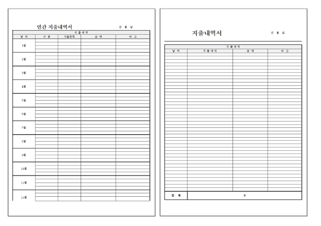 다양한 종류의 지출 내역서 양식