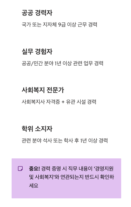 전문가 팁: 경력 증명 시 서류상 직무 내용이 공고문 상의 '경영지원 및 사회복지'와 밀접한 연관이 있는지 미리 확인하는 것이 필수입니다.