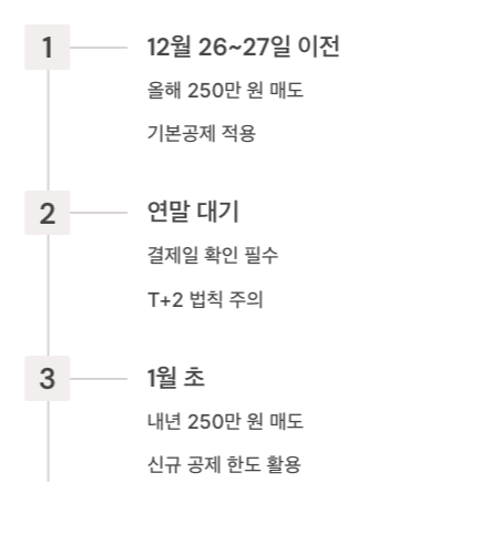 - 250만 원 공제를 위해 매도 시점을 나누고,